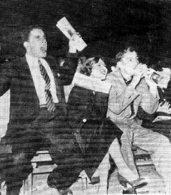 A nossa fotografia apresenta um dos mil, ou antes dos milhões de aspectos que esta excitação apresenta. Lado a lado, um jovem robusto urra num rictus que tem um quê de entusiasmo, um quê de gemido, um quê de imprecação, uma jovem sorri deliciada, enlevada, como que sentindo escorrer um deleite interior em todos os seus nervos, e outro jovem, sumamente atento, utiliza uma revista como corneta. São três jovens que «descansam» divertindo-se. Com o quê? Um match? Um torneio? Não… ouvem um jazz!